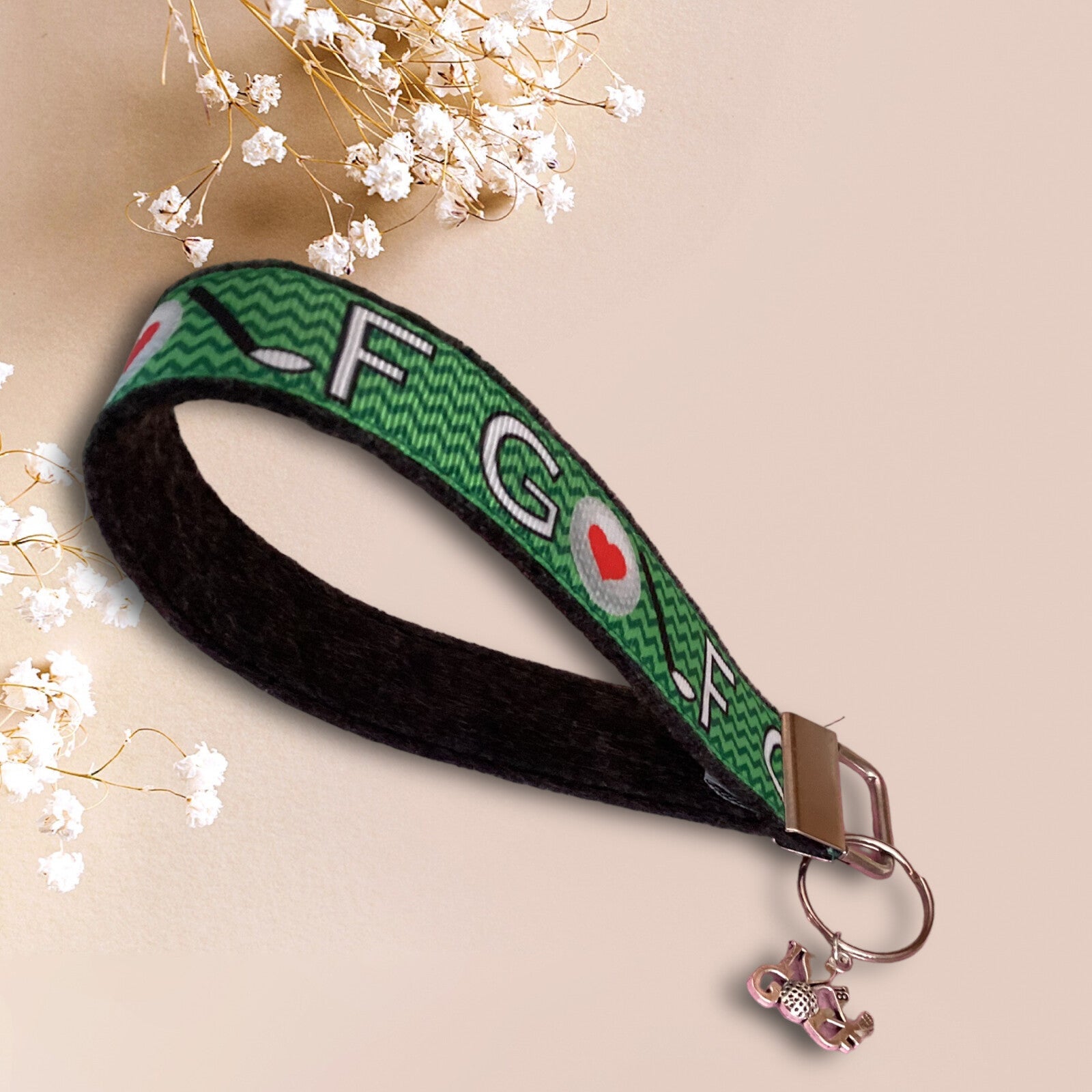 GOLF Schlüsselanhänger Handmade Filz / Ribbon Grün-Weiß