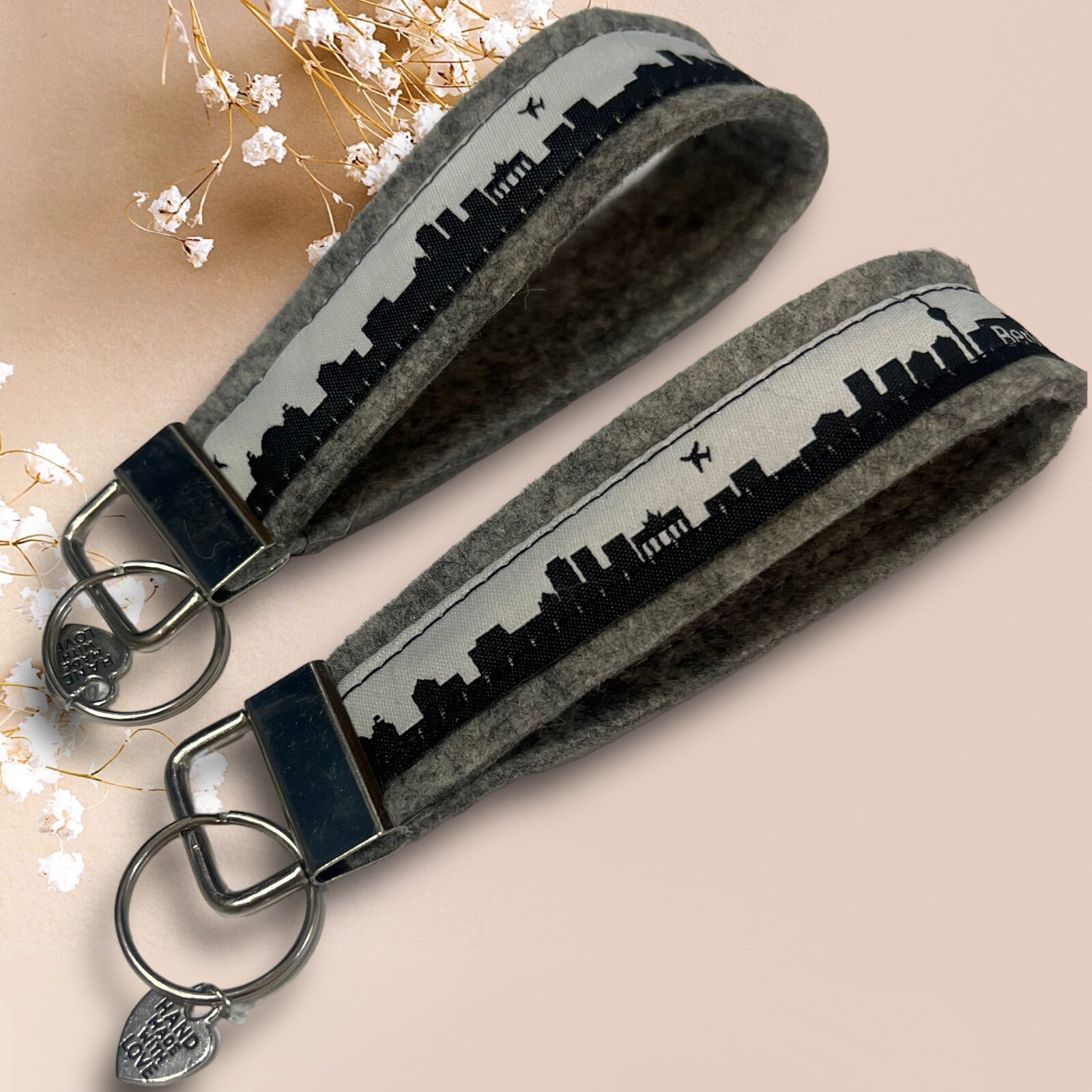 Berlin Schlüsselanhänger Handmade Filz / Ribbon Grau - Schwarz