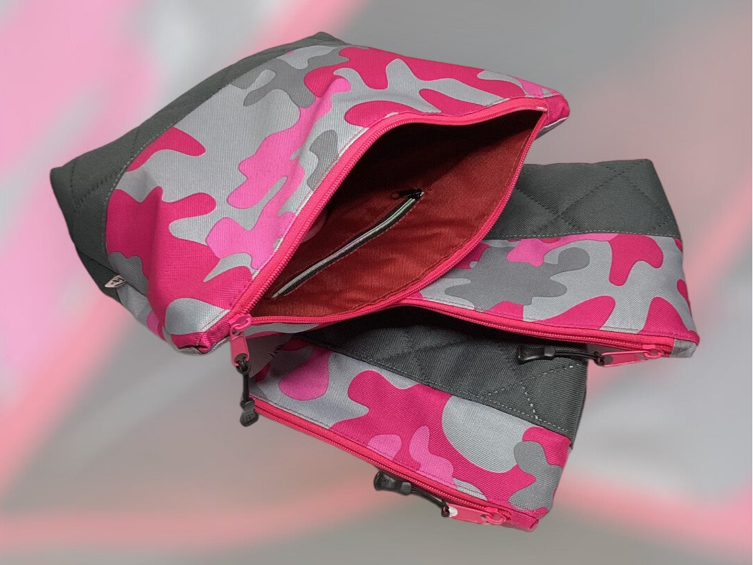 Camouflage Pink-Grau Kosmetiktasche Make-Up Allzwecktasche Kulturtasche Handmade Eigenproduktion