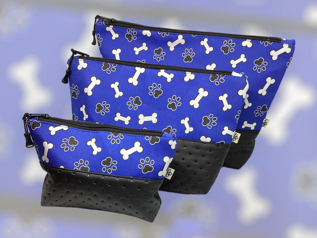 Blau Schwarz Hundepfoten Knochen Kosmetiktasche Make-Up Allzwecktasche Kulturtasche Handmade Eigenproduktion