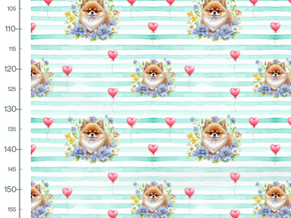 50cm Sommersweat / French Terry Pomeranian Hund Zwergspitz Blumen Boho gestreift, Aquarelle Premium Meterware