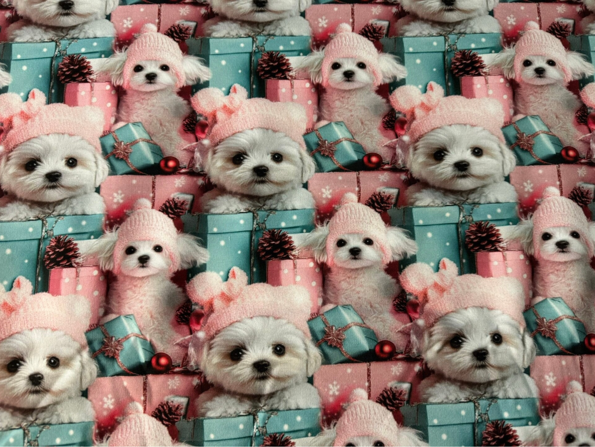 Auf Lager Weihnachten Malteser Hunde Rosa-TĂĽrkis Geschenke French Terry Premium Meterware Eigenproduktion