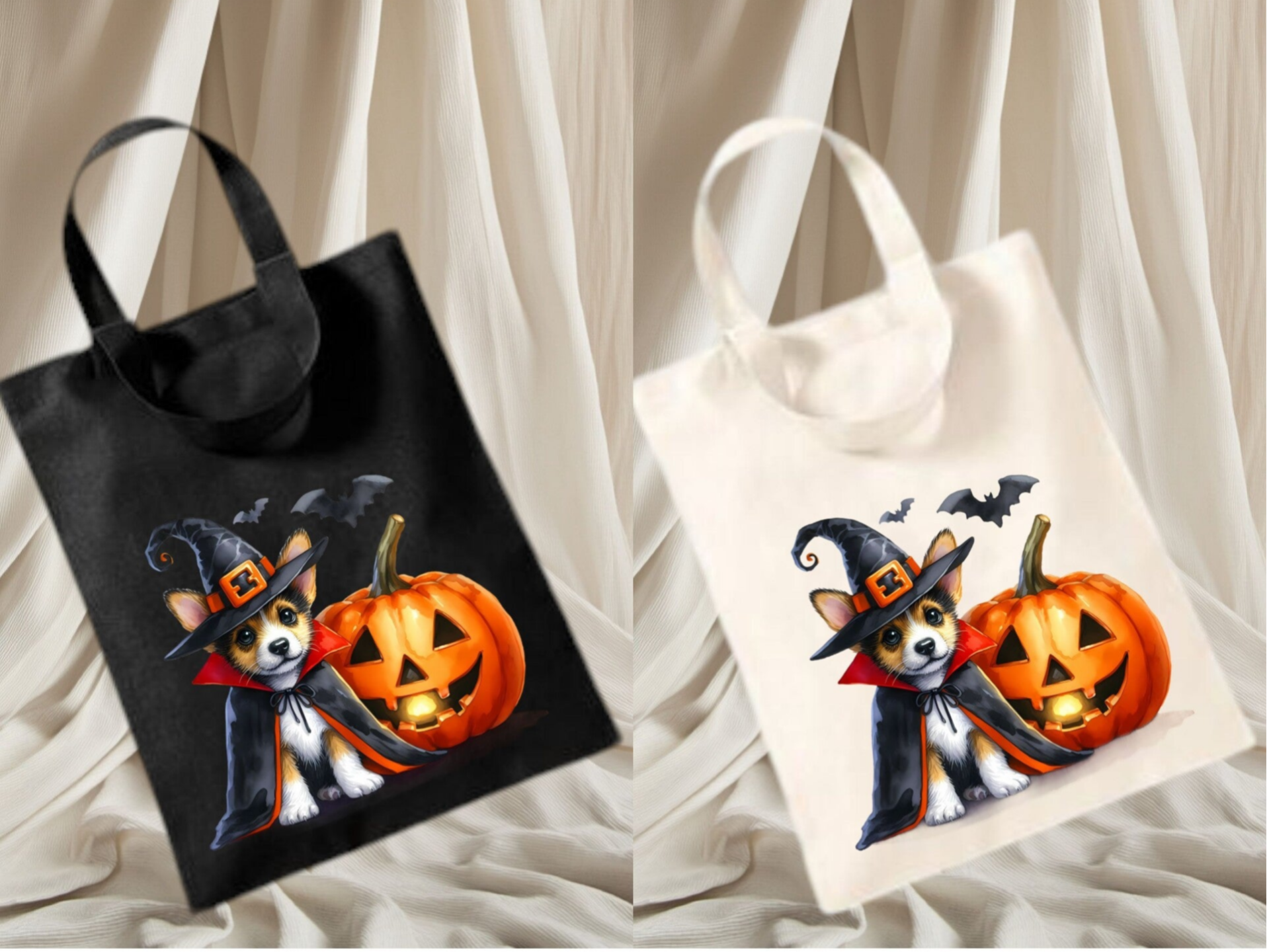 Kinder Halloween Motive Baumwolltasche Schwarz / Beige Kurze Henkel Nachhaltig, Umweltfreundlich Geschenkidee Div. Motive