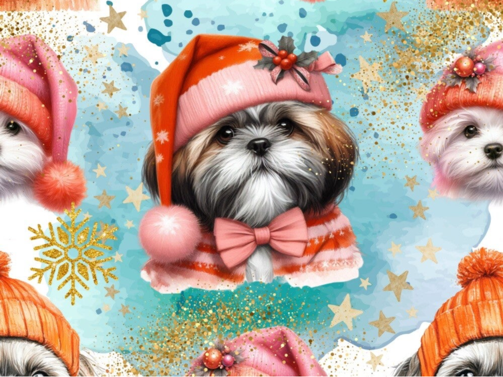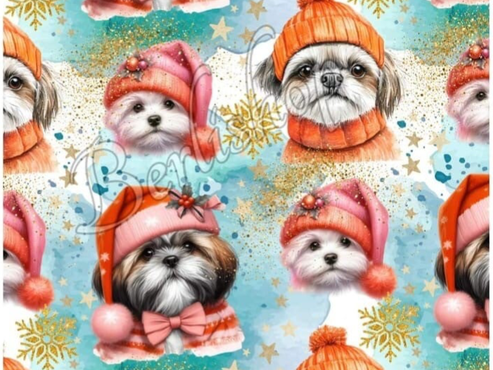 Weihnachten Shih-Tzu Hunde Orange / TĂĽrkis French Terry / Baumwolle / Softshell Meterware Eigenproduktion