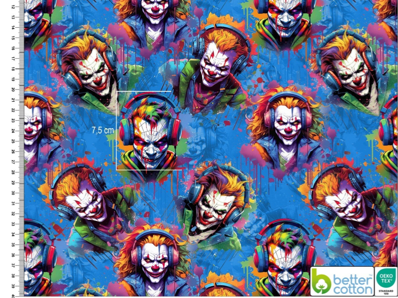 Joker Clown mit Kopfhörer Sommersweat FRENCH TERRY Meterware 180 cm Breit