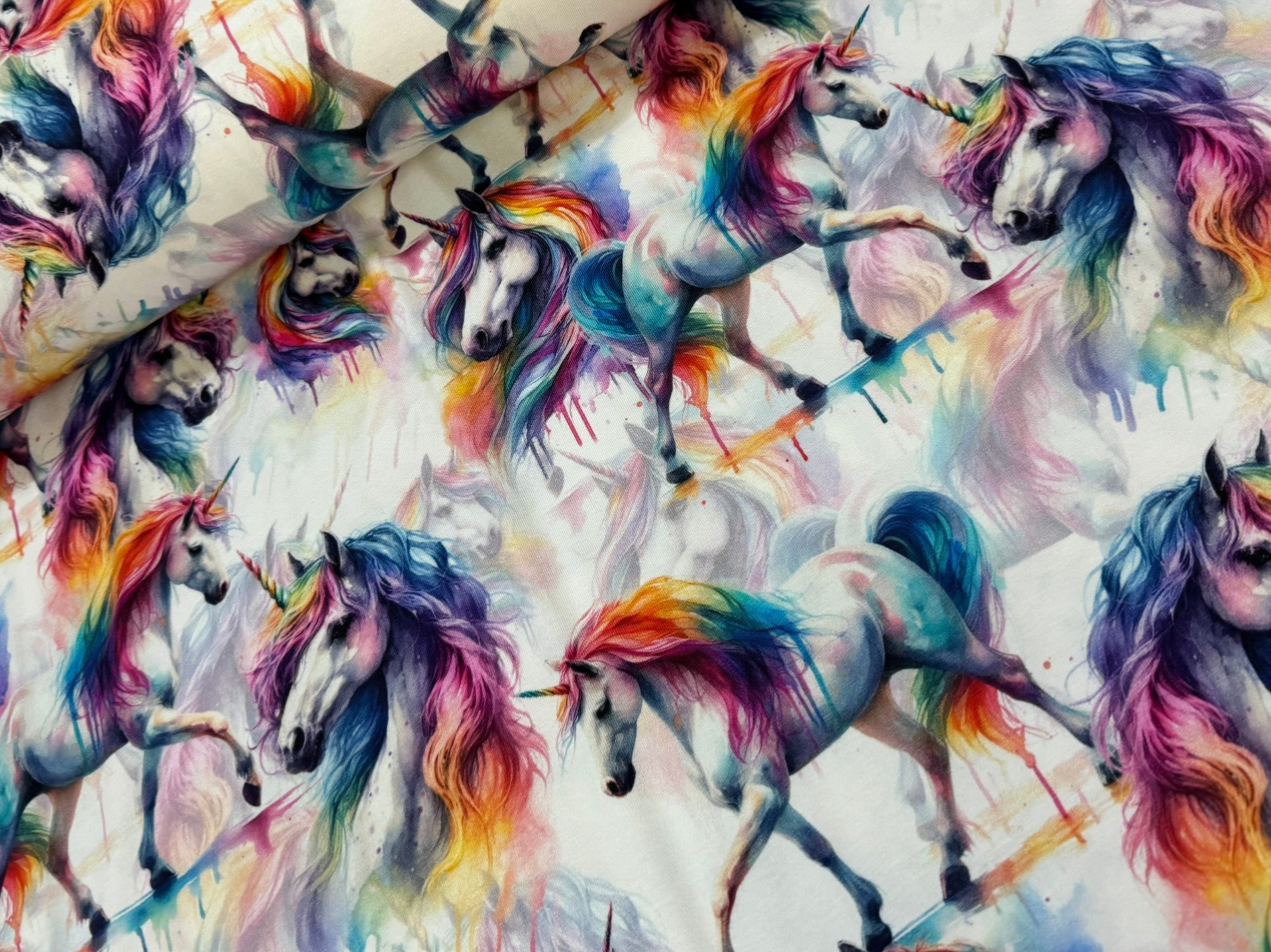 50 cm Jersey Pferde Einhorn Aquarell Regenbogen Meterware