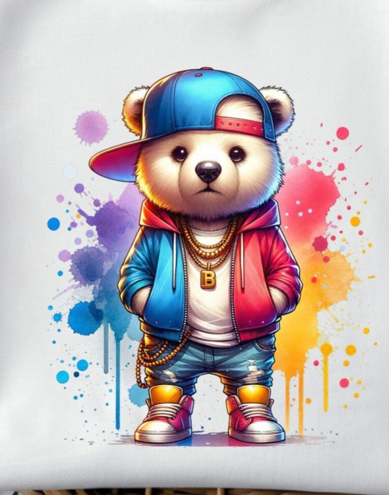 Bügelbild Hip Hop Bär / Splash Regenbogen in 2 Großen