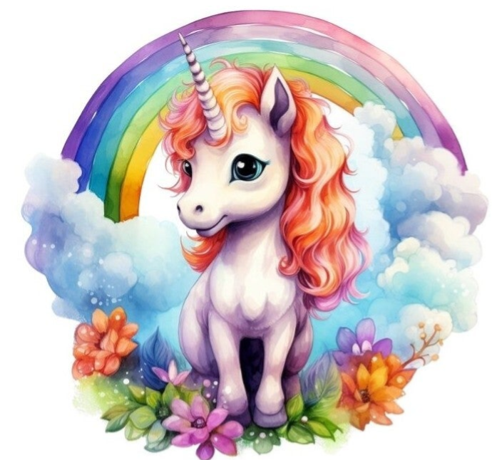 Bügelbild süßer Einhorn / regenbogen Blumen Aquarell ca. 17x17 cm