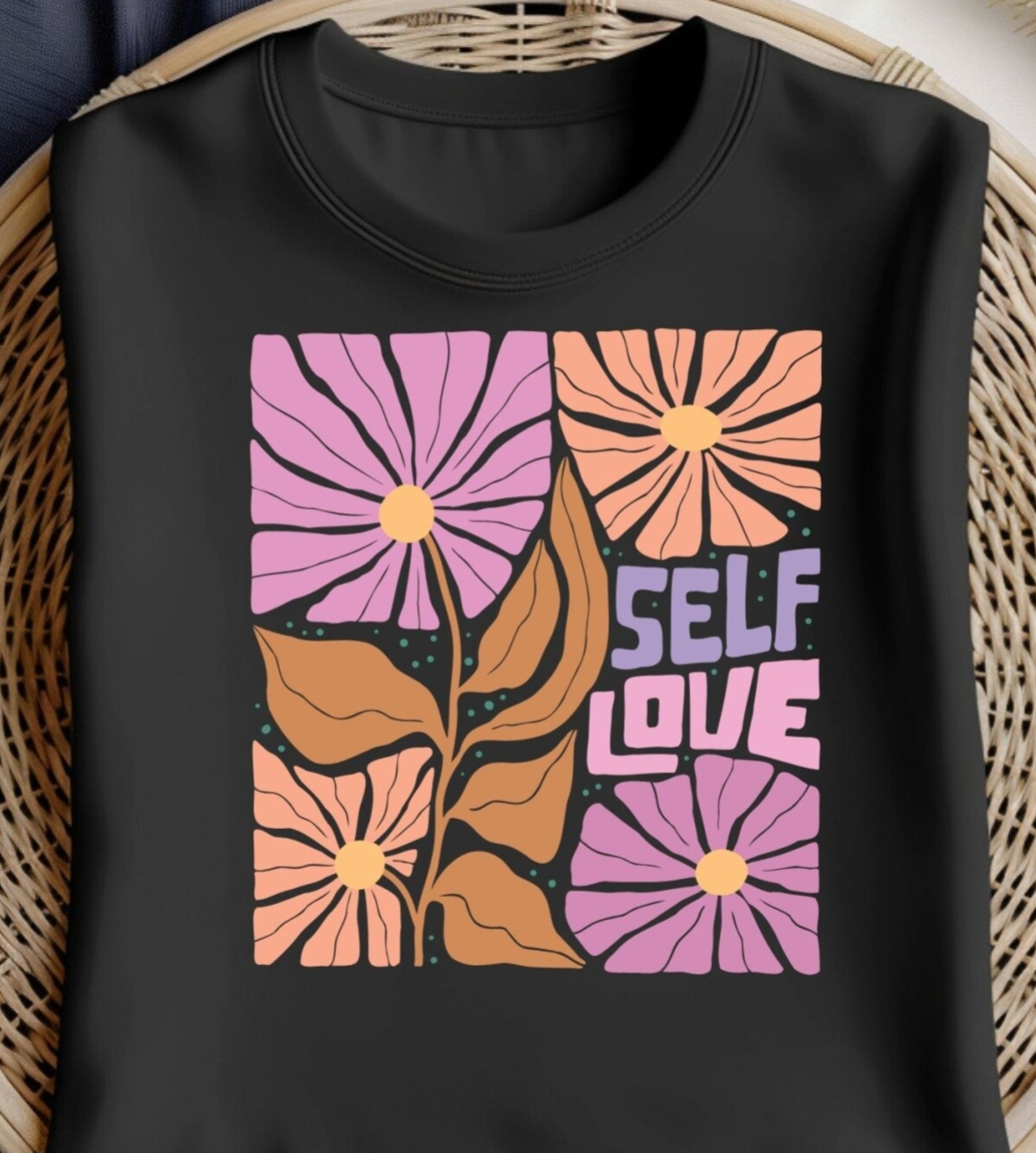 Bügelbild VINTAGE Blumen Pastell SELF LOVE ca. 27x24 cm