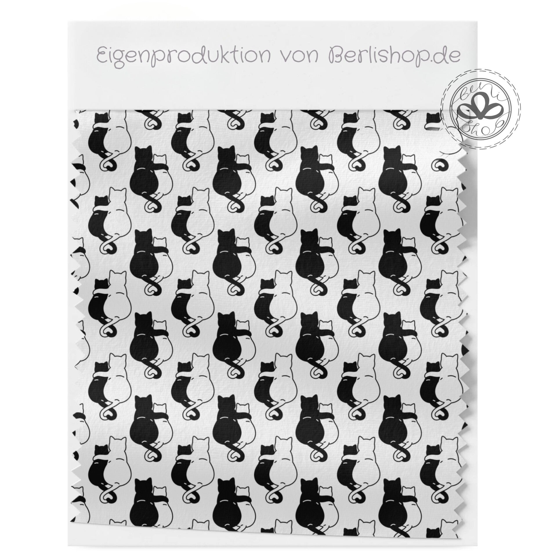 Vorbestellung Liebes Katzen Schwarz - Weiß Stoffarten: French Terry, Baumwolle, Oxford, Jersey, Softshell, Musselin, Panamastoff
