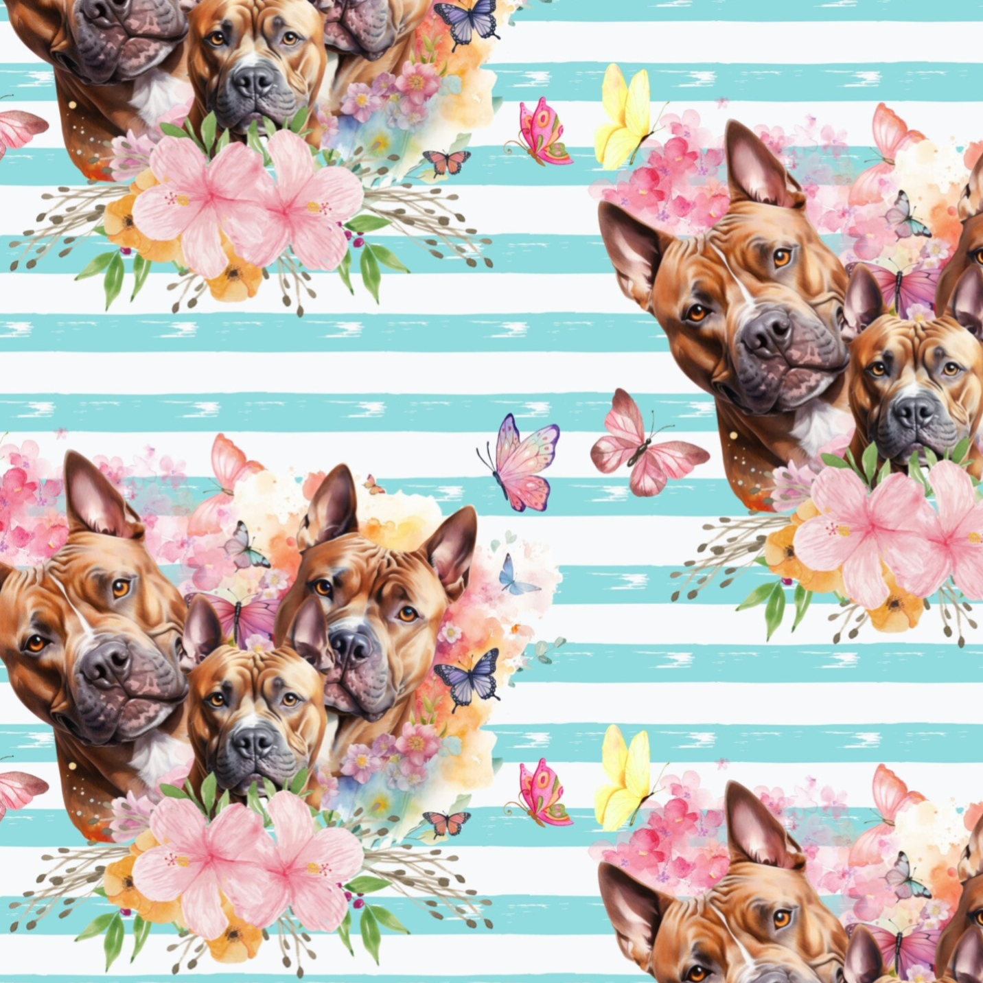 Vorbestellung Pitbull Hunde Frühlingsblumen Streifen Stoffarten: French Terry, Baumwolle, Oxford, Jersey, Softshell, Musselin, Panamastoff